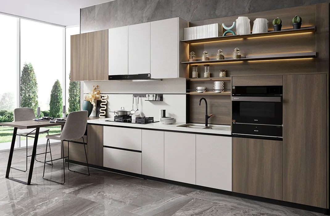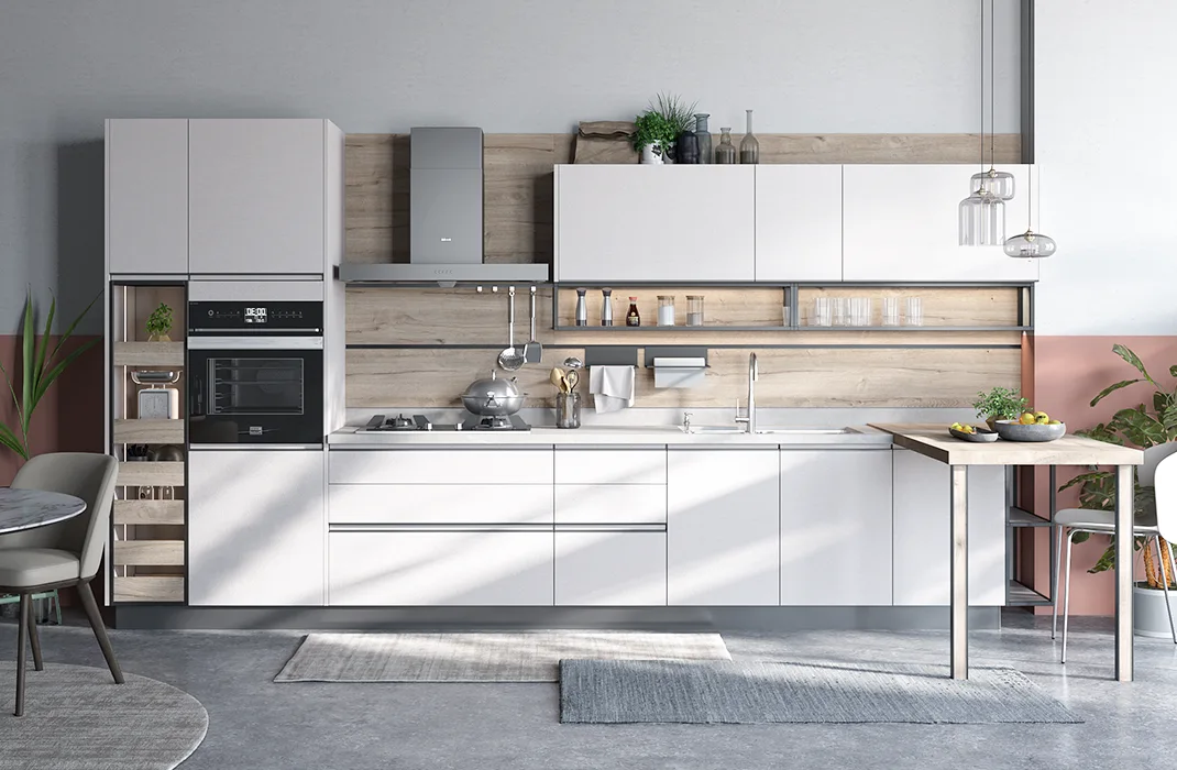 Νέα σειρά μοντέρνων ντουλαπιών κουζίνας κατασκευασμένα από laminate υψηλής ποιότητας. Συνδυάζουν κομψό, μοντέρνο σχεδιασμό με στιβαρή αντοχή και εύκολη συντήρηση, προσφέροντας μια κομψή και πρακτική λύση για τις σημερινές κουζίνες. Μεταμορφώστε τον χώρο σας με τα κομψά και πλούσια φινιρίσματα της νέας μας συλλογής Μ100.